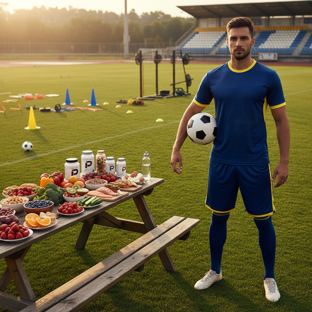 Dieta equilibrada para futbolistas con macronutrientes, hidratación y suplementos clave para rendimiento óptimo
